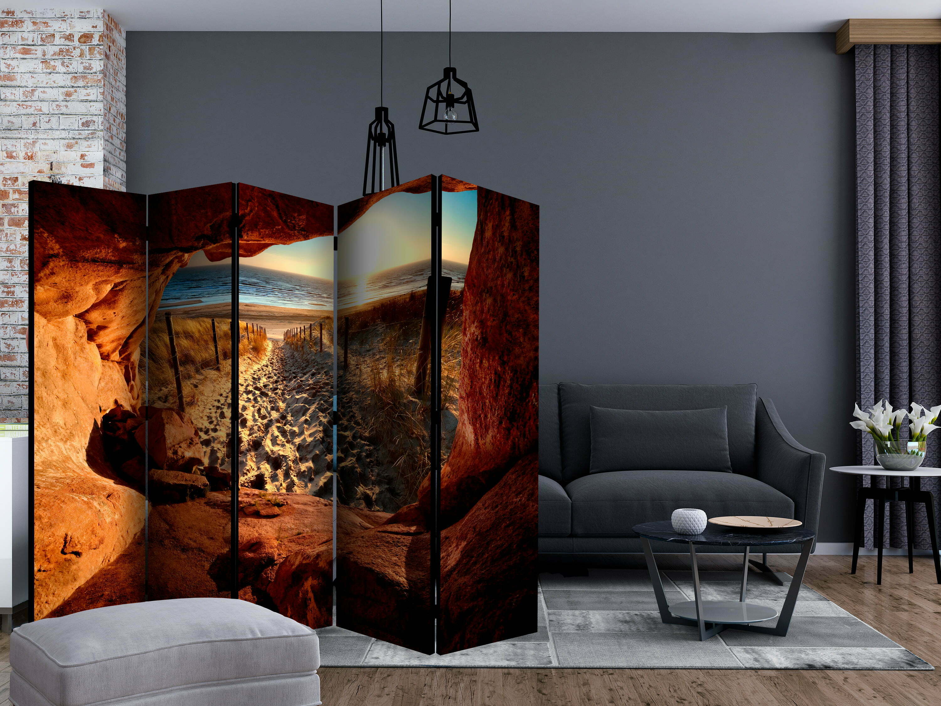 5-teiliges Paravent – Cave: Beautiful Beach II [Room Dividers]