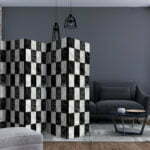 Dekoratives Paravent “Checker II [Room Dividers]” ist ein besonderes Schmuckstück für die modernen Inneräume. 5-teilig, hergestellt aus Holz und beidseitig bedrucktes Paravent teilt nicht nur diskret den Raum sonder kreiert auch in dem Raum ein fabelhaftes Arrangement.