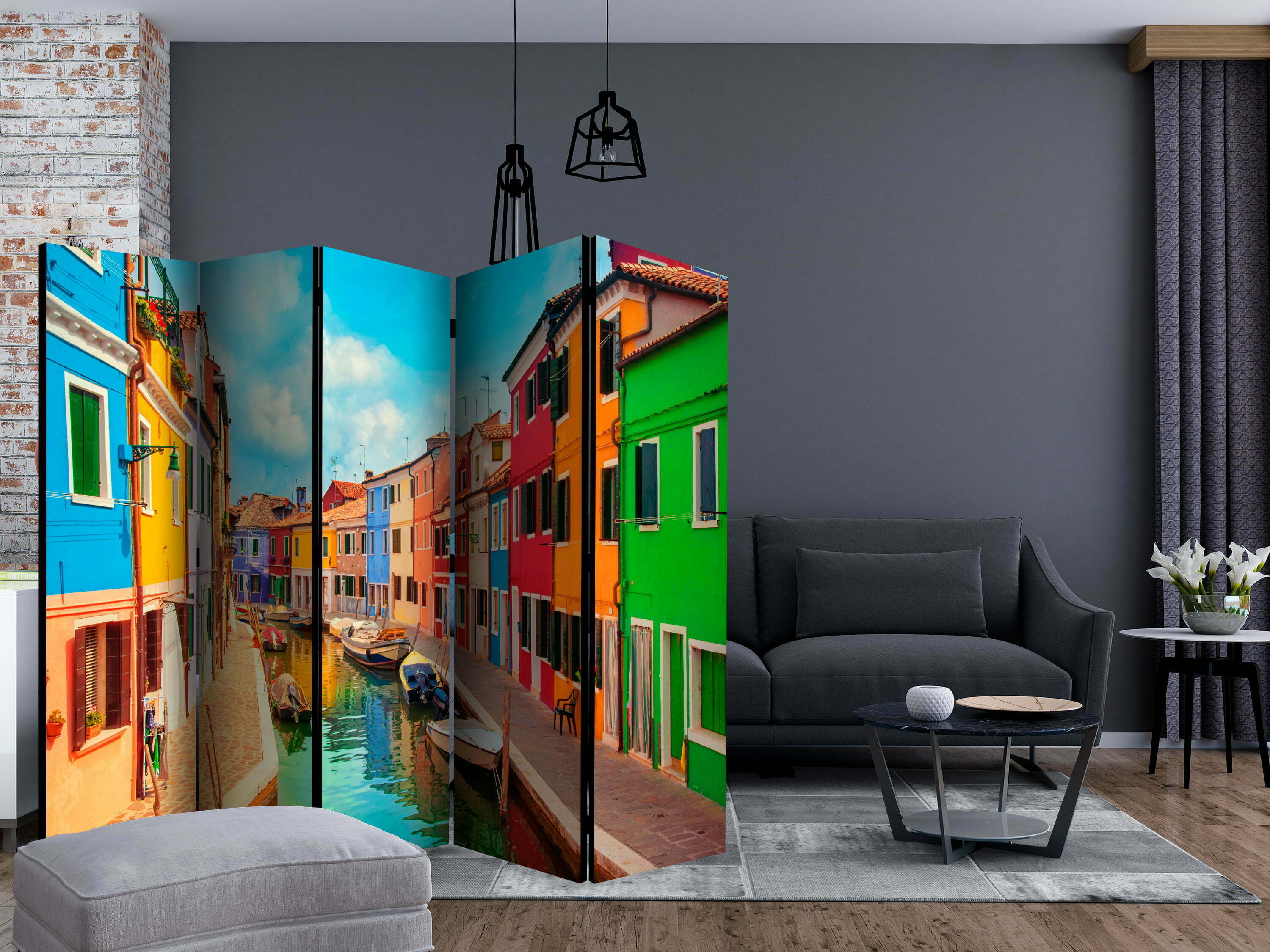 5-teiliges Paravent – Colorful Canal in Burano II [Room Dividers]