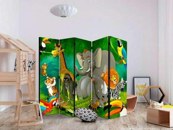 Dekoratives Paravent “Colourful Safari II [Room Dividers]” ist ein besonderes Schmuckstück für die modernen Inneräume. 5-teilig, hergestellt aus Holz und beidseitig bedrucktes Paravent teilt nicht nur diskret den Raum sonder kreiert auch in dem Raum ein fabelhaftes Arrangement. Perfekte Herstellung sowie originelle Motive in der Full HD Druckqualität verursachen, dass die Zimmerparavents jedem Raum einen einmaligen Charme verleihen. Die dekorativen Paravents für die Wohnung, dass ist mit Sicherheit eine originelle Idee für die Dekoration des Innenraumes. Es lohnt sich ihre praktische Anwendung zu erwähnen – die Zimmerparavents kann man z.B. zwecks der Kachierung des Wäschetrockners nutzen. Das Paravent ist eine sehr originelle Dekoration von Räumen, die man nutzen kann, sowohl in der Wohnung wie auch in einem Atelier z.B. im Friseursalon, Arztpraxis oder im Buchhaltungsbüro.