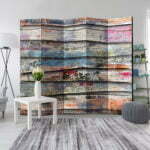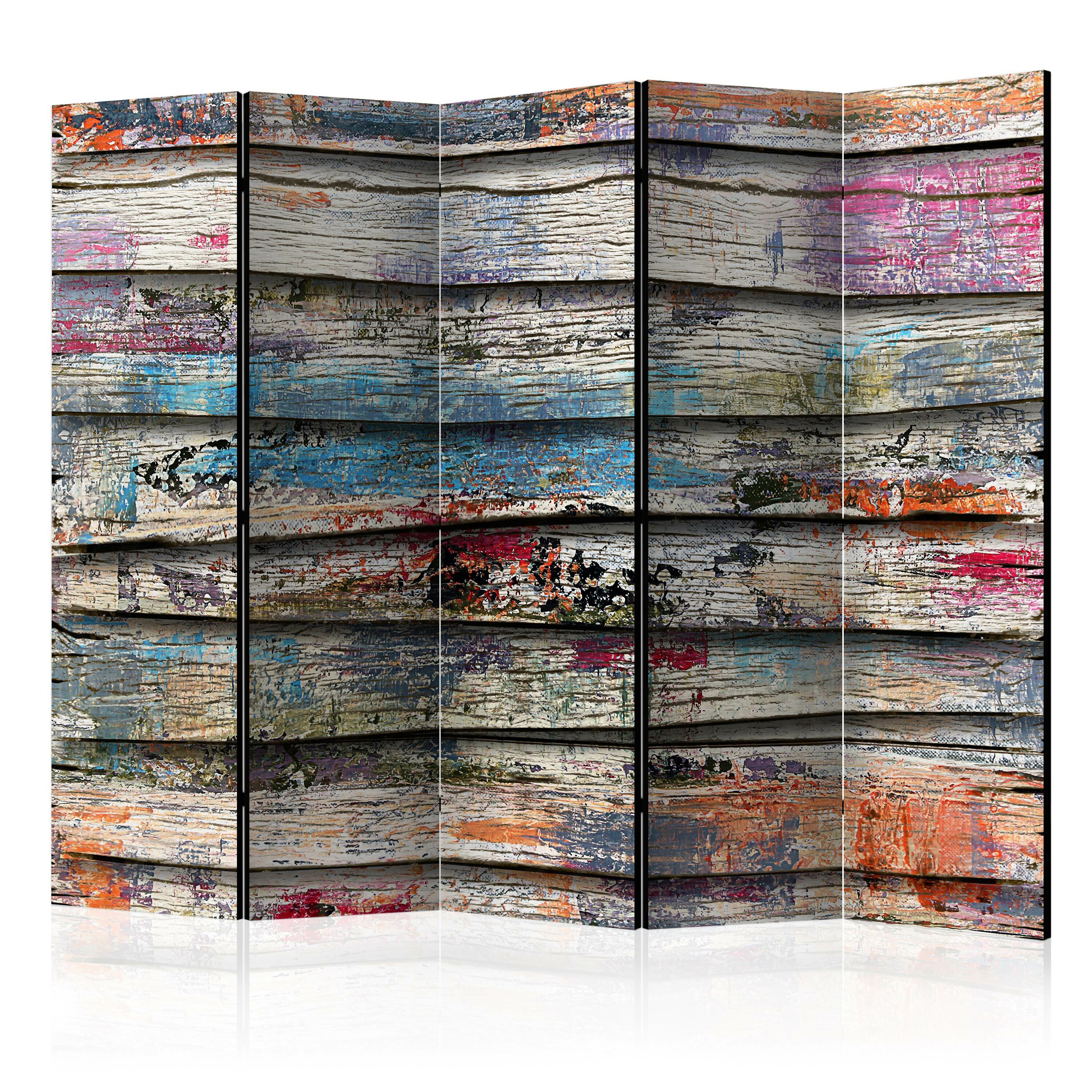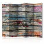 5-teiliges Paravent – Colourful Wood II [Room Dividers]