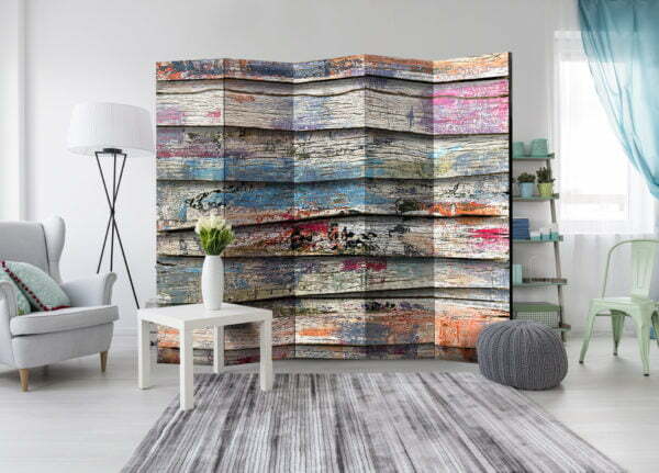 Dekoratives Paravent “Colourful Wood II [Room Dividers]” ist ein besonderes Schmuckstück für die modernen Inneräume. 5-teilig, hergestellt aus Holz und beidseitig bedrucktes Paravent teilt nicht nur diskret den Raum sonder kreiert auch in dem Raum ein fabelhaftes Arrangement. Perfekte Herstellung sowie originelle Motive in der Full HD Druckqualität verursachen, dass die Zimmerparavents jedem Raum einen einmaligen Charme verleihen. Die dekorativen Paravents für die Wohnung, dass ist mit Sicherheit eine originelle Idee für die Dekoration des Innenraumes. Es lohnt sich ihre praktische Anwendung zu erwähnen – die Zimmerparavents kann man z.B. zwecks der Kachierung des Wäschetrockners nutzen. Das Paravent ist eine sehr originelle Dekoration von Räumen, die man nutzen kann, sowohl in der Wohnung wie auch in einem Atelier z.B. im Friseursalon, Arztpraxis oder im Buchhaltungsbüro.