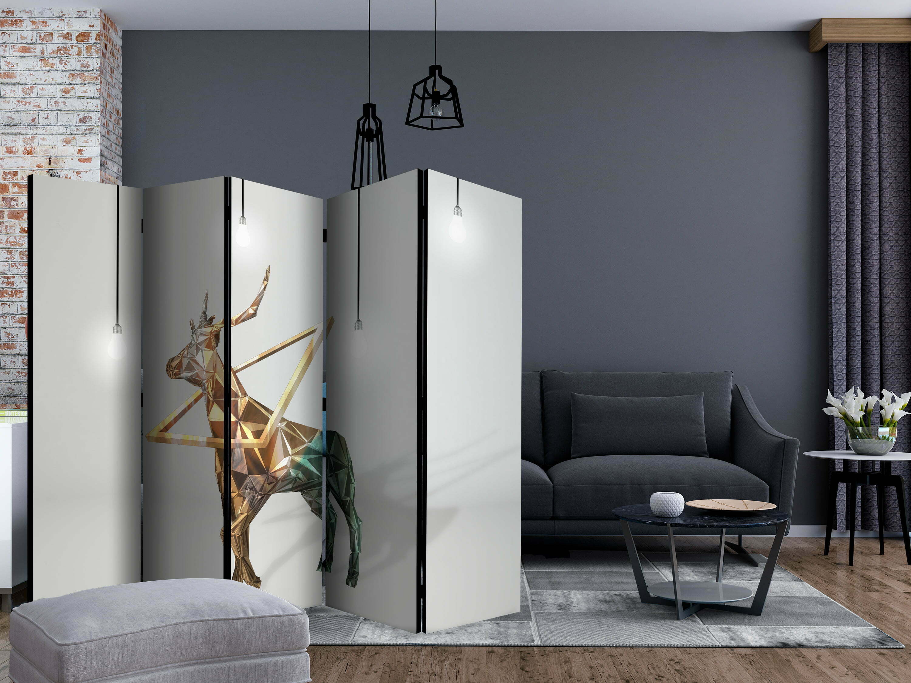 Dekoratives Paravent “deer (3D) II [Room Dividers]” ist ein besonderes Schmuckstück für die modernen Inneräume. 5-teilig, hergestellt aus Holz und beidseitig bedrucktes Paravent teilt nicht nur diskret den Raum sonder kreiert auch in dem Raum ein fabelhaftes Arrangement. Perfekte Herstellung sowie originelle Motive in der Full HD Druckqualität verursachen, dass die Zimmerparavents jedem Raum einen einmaligen Charme verleihen. Die dekorativen Paravents für die Wohnung, dass ist mit Sicherheit eine originelle Idee für die Dekoration des Innenraumes. Es lohnt sich ihre praktische Anwendung zu erwähnen – die Zimmerparavents kann man z.B. zwecks der Kachierung des Wäschetrockners nutzen. Das Paravent ist eine sehr originelle Dekoration von Räumen, die man nutzen kann, sowohl in der Wohnung wie auch in einem Atelier z.B. im Friseursalon, Arztpraxis oder im Buchhaltungsbüro.