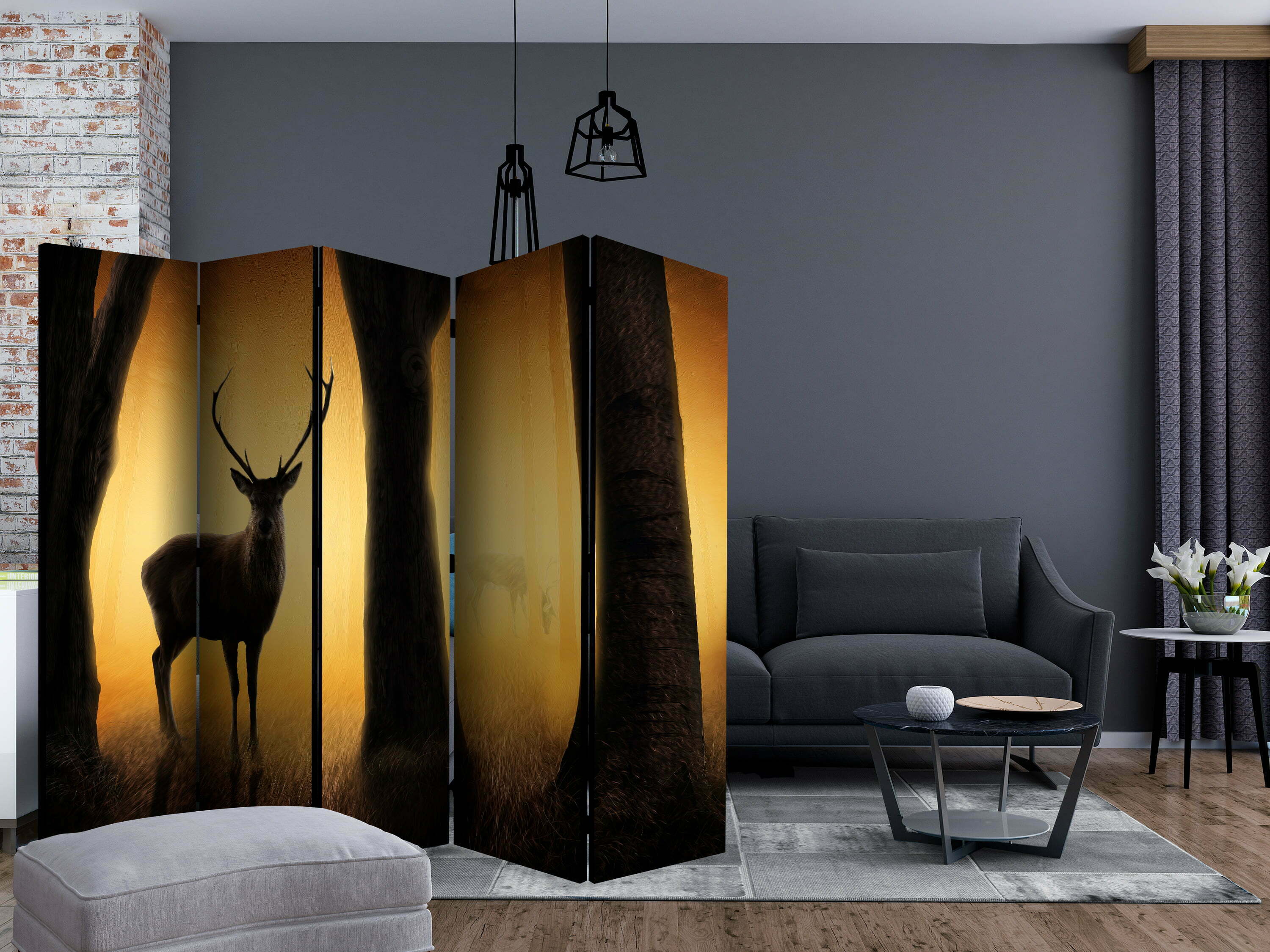 Dekoratives Paravent “Deer in his natural habitat II [Room Dividers]” ist ein besonderes Schmuckstück für die modernen Inneräume. 5-teilig, hergestellt aus Holz und beidseitig bedrucktes Paravent teilt nicht nur diskret den Raum sonder kreiert auch in dem Raum ein fabelhaftes Arrangement. Perfekte Herstellung sowie originelle Motive in der Full HD Druckqualität verursachen, dass die Zimmerparavents jedem Raum einen einmaligen Charme verleihen. Die dekorativen Paravents für die Wohnung, dass ist mit Sicherheit eine originelle Idee für die Dekoration des Innenraumes. Es lohnt sich ihre praktische Anwendung zu erwähnen – die Zimmerparavents kann man z.B. zwecks der Kachierung des Wäschetrockners nutzen. Das Paravent ist eine sehr originelle Dekoration von Räumen, die man nutzen kann, sowohl in der Wohnung wie auch in einem Atelier z.B. im Friseursalon, Arztpraxis oder im Buchhaltungsbüro.