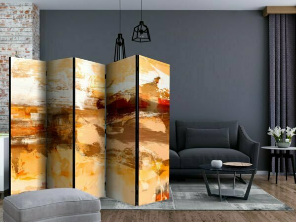 Dekoratives Paravent “Desert storm II [Room Dividers]” ist ein besonderes Schmuckstück für die modernen Inneräume. 5-teilig, hergestellt aus Holz und beidseitig bedrucktes Paravent teilt nicht nur diskret den Raum sonder kreiert auch in dem Raum ein fabelhaftes Arrangement.