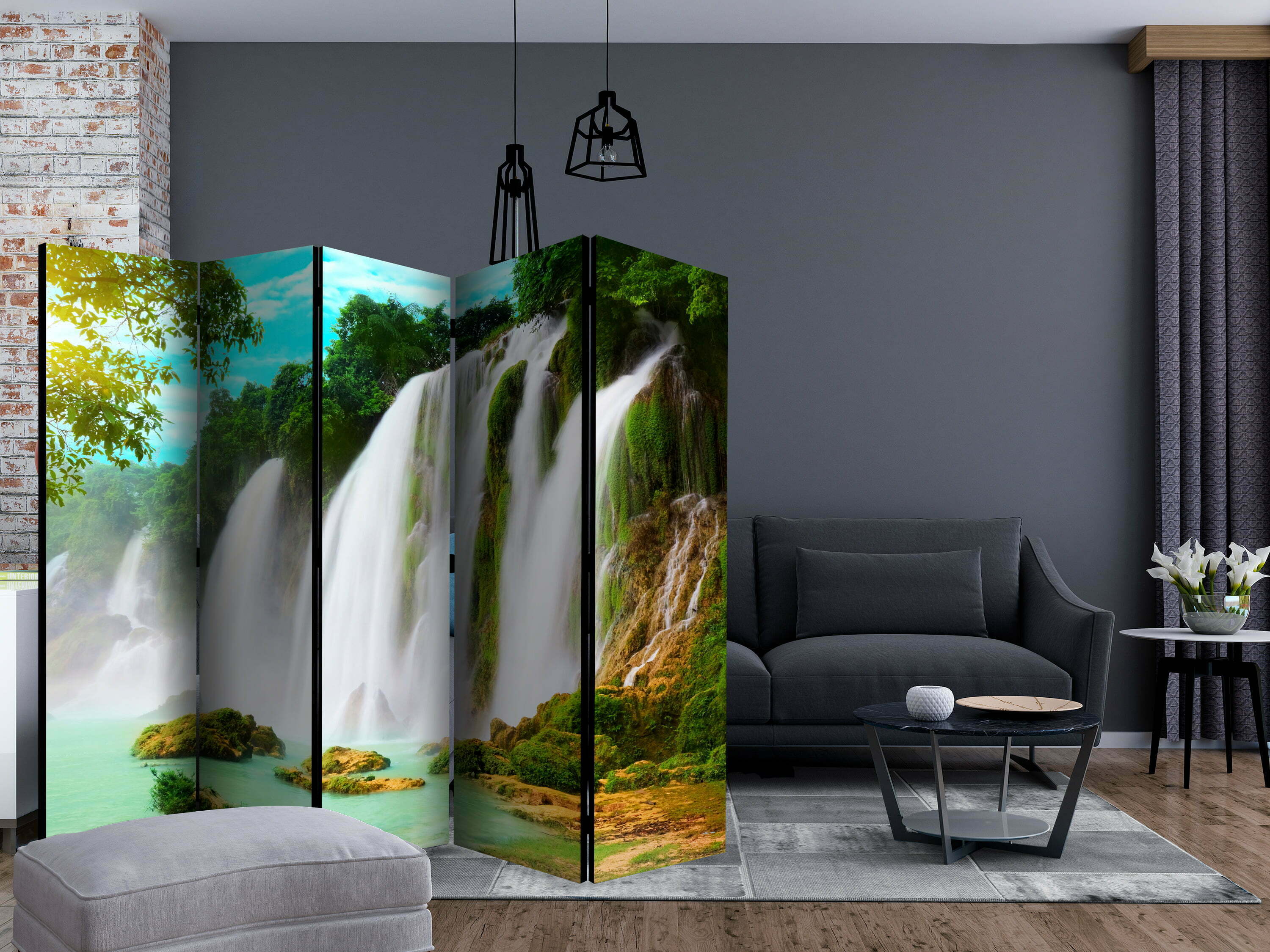 5-teiliges Paravent – Detian – waterfall (China) II [Room Dividers]