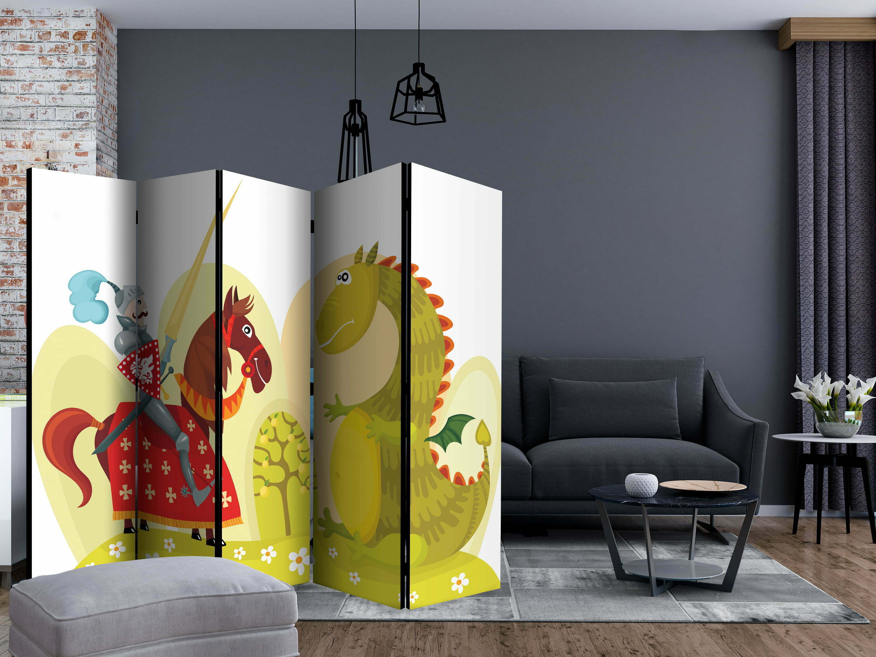 Dekoratives Paravent “Dragon and knight II [Room Dividers]” ist ein besonderes Schmuckstück für die modernen Inneräume. 5-teilig, hergestellt aus Holz und beidseitig bedrucktes Paravent teilt nicht nur diskret den Raum sonder kreiert auch in dem Raum ein fabelhaftes Arrangement. Perfekte Herstellung sowie originelle Motive in der Full HD Druckqualität verursachen, dass die Zimmerparavents jedem Raum einen einmaligen Charme verleihen. Die dekorativen Paravents für die Wohnung, dass ist mit Sicherheit eine originelle Idee für die Dekoration des Innenraumes. Es lohnt sich ihre praktische Anwendung zu erwähnen – die Zimmerparavents kann man z.B. zwecks der Kachierung des Wäschetrockners nutzen. Das Paravent ist eine sehr originelle Dekoration von Räumen, die man nutzen kann, sowohl in der Wohnung wie auch in einem Atelier z.B. im Friseursalon, Arztpraxis oder im Buchhaltungsbüro.