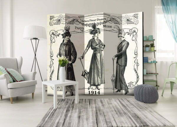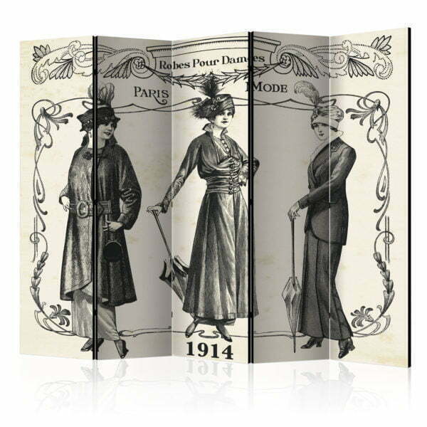 Dekoratives Paravent “Dress 1914 II [Room Dividers]” ist ein besonderes Schmuckstück für die modernen Inneräume. 5-teilig, hergestellt aus Holz und beidseitig bedrucktes Paravent teilt nicht nur diskret den Raum sonder kreiert auch in dem Raum ein fabelhaftes Arrangement.