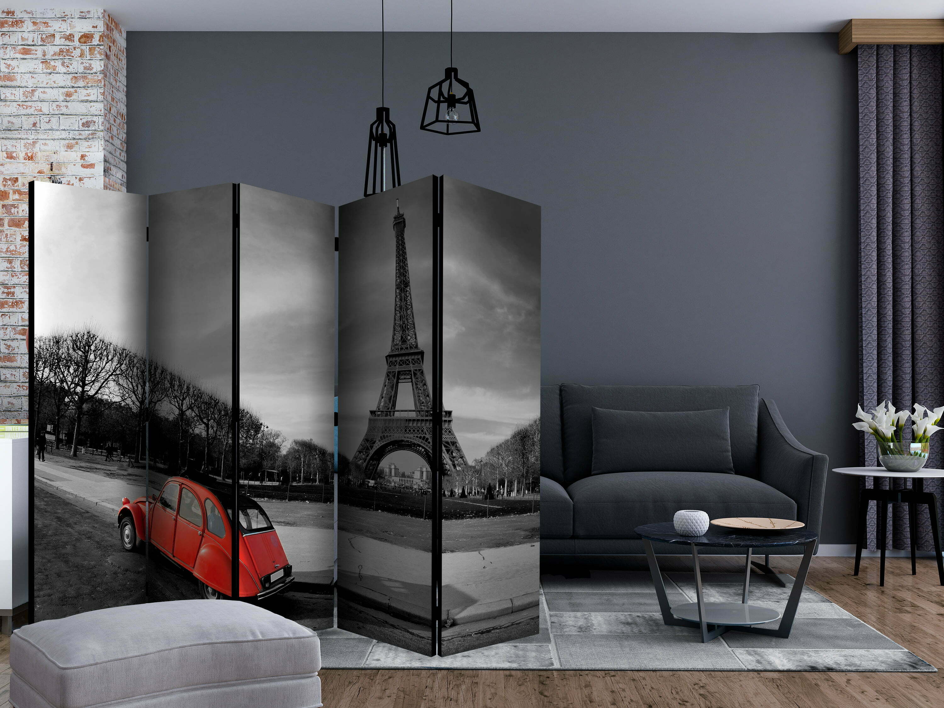 5-teiliges Paravent – Eiffel Tower and red car II [Room Dividers]