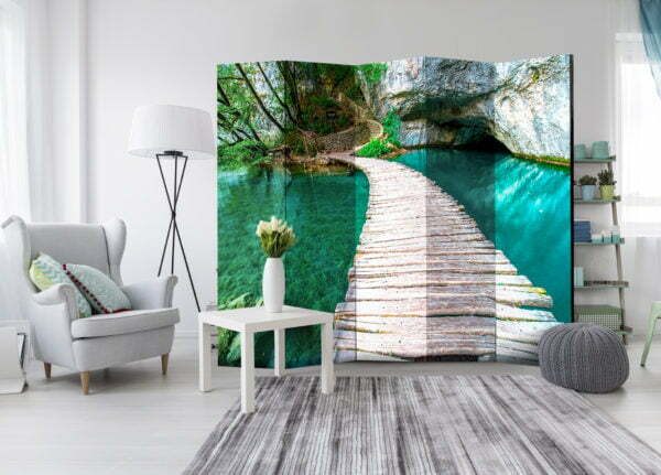 Dekoratives Paravent “Emerald Lake II [Room Dividers]” ist ein besonderes Schmuckstück für die modernen Inneräume. 5-teilig, hergestellt aus Holz und beidseitig bedrucktes Paravent teilt nicht nur diskret den Raum sonder kreiert auch in dem Raum ein fabelhaftes Arrangement. Perfekte Herstellung sowie originelle Motive in der Full HD Druckqualität verursachen, dass die Zimmerparavents jedem Raum einen einmaligen Charme verleihen. Die dekorativen Paravents für die Wohnung, dass ist mit Sicherheit eine originelle Idee für die Dekoration des Innenraumes. Es lohnt sich ihre praktische Anwendung zu erwähnen – die Zimmerparavents kann man z.B. zwecks der Kachierung des Wäschetrockners nutzen. Das Paravent ist eine sehr originelle Dekoration von Räumen, die man nutzen kann, sowohl in der Wohnung wie auch in einem Atelier z.B. im Friseursalon, Arztpraxis oder im Buchhaltungsbüro.