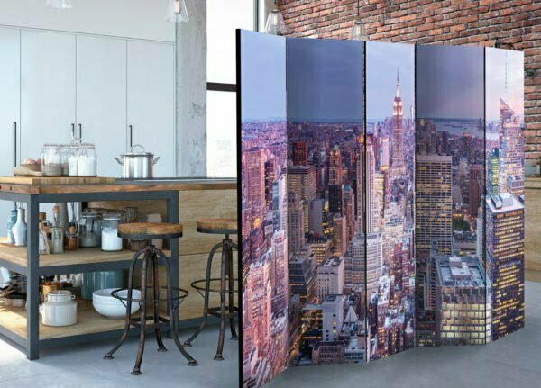 Dekoratives Paravent “Evening City II [Room Dividers]” ist ein besonderes Schmuckstück für die modernen Inneräume. 5-teilig, hergestellt aus Holz und beidseitig bedrucktes Paravent teilt nicht nur diskret den Raum sonder kreiert auch in dem Raum ein fabelhaftes Arrangement.