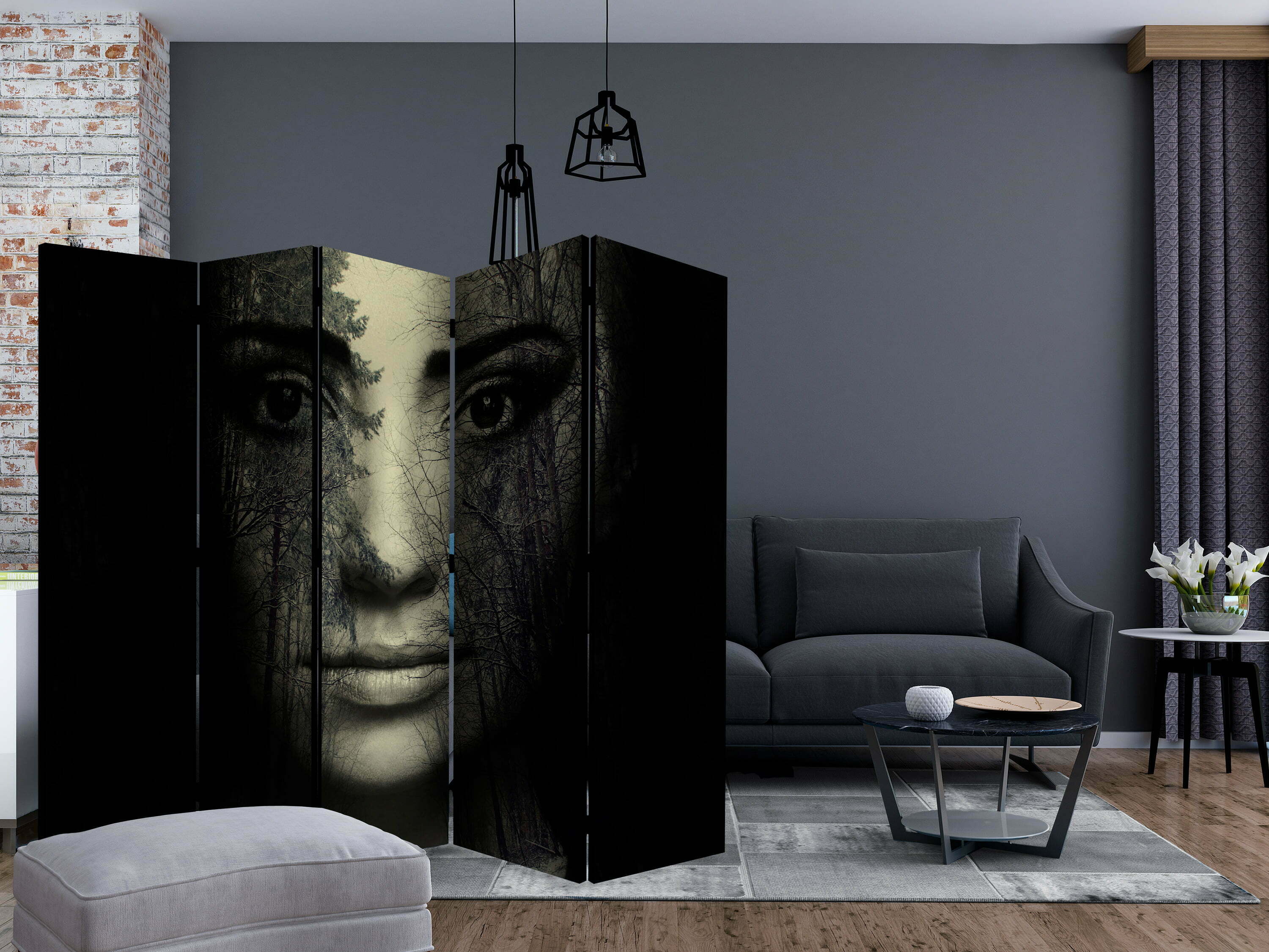 Dekoratives Paravent “Forest mask II [Room Dividers]” ist ein besonderes Schmuckstück für die modernen Inneräume. 5-teilig, hergestellt aus Holz und beidseitig bedrucktes Paravent teilt nicht nur diskret den Raum sonder kreiert auch in dem Raum ein fabelhaftes Arrangement.