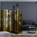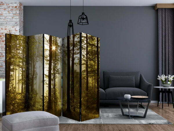 Dekoratives Paravent “Forest: Morning Sunlight II [Room Dividers]” ist ein besonderes Schmuckstück für die modernen Inneräume. 5-teilig, hergestellt aus Holz und beidseitig bedrucktes Paravent teilt nicht nur diskret den Raum sonder kreiert auch in dem Raum ein fabelhaftes Arrangement.
