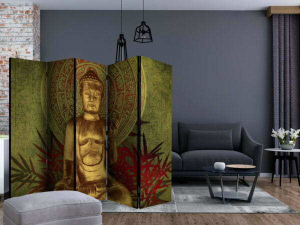 Dekoratives Paravent “Golden Buddha II [Room Dividers]” ist ein besonderes Schmuckstück für die modernen Inneräume. 5-teilig, hergestellt aus Holz und beidseitig bedrucktes Paravent teilt nicht nur diskret den Raum sonder kreiert auch in dem Raum ein fabelhaftes Arrangement. Perfekte Herstellung sowie originelle Motive in der Full HD Druckqualität verursachen, dass die Zimmerparavents jedem Raum einen einmaligen Charme verleihen. Die dekorativen Paravents für die Wohnung, dass ist mit Sicherheit eine originelle Idee für die Dekoration des Innenraumes. Es lohnt sich ihre praktische Anwendung zu erwähnen – die Zimmerparavents kann man z.B. zwecks der Kachierung des Wäschetrockners nutzen. Das Paravent ist eine sehr originelle Dekoration von Räumen, die man nutzen kann, sowohl in der Wohnung wie auch in einem Atelier z.B. im Friseursalon, Arztpraxis oder im Buchhaltungsbüro.