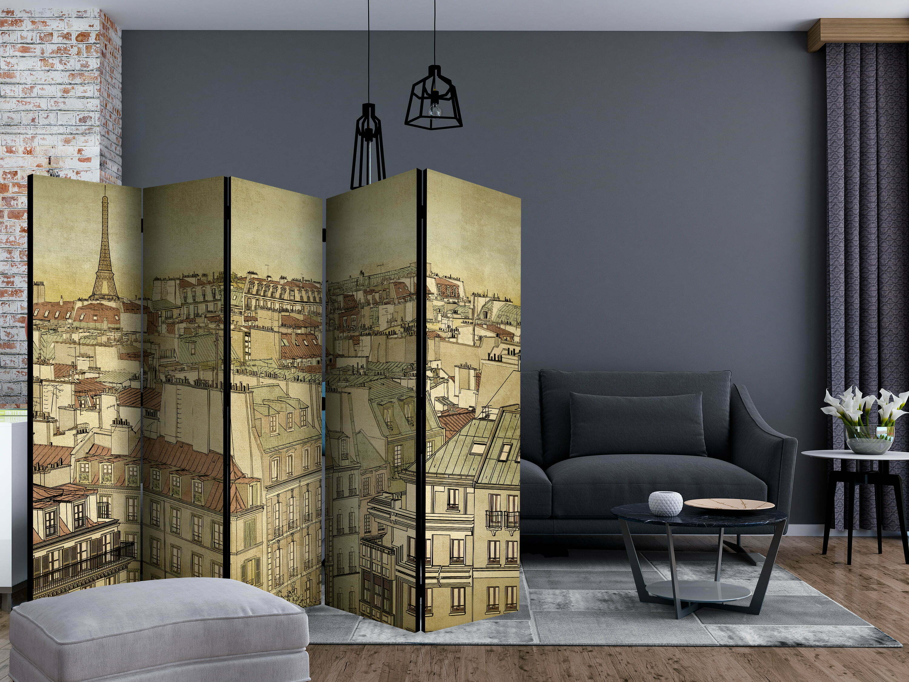 Dekoratives Paravent “Good bye Paris! II [Room Dividers]” ist ein besonderes Schmuckstück für die modernen Inneräume. 5-teilig, hergestellt aus Holz und beidseitig bedrucktes Paravent teilt nicht nur diskret den Raum sonder kreiert auch in dem Raum ein fabelhaftes Arrangement.