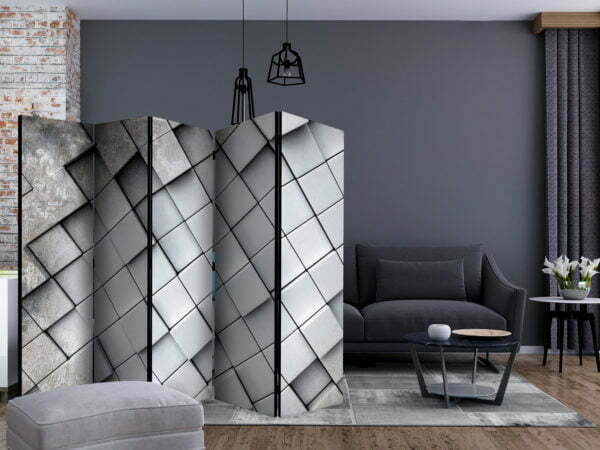 Dekoratives Paravent “Gray background 3D II [Room Dividers]” ist ein besonderes Schmuckstück für die modernen Inneräume. 5-teilig, hergestellt aus Holz und beidseitig bedrucktes Paravent teilt nicht nur diskret den Raum sonder kreiert auch in dem Raum ein fabelhaftes Arrangement. Perfekte Herstellung sowie originelle Motive in der Full HD Druckqualität verursachen, dass die Zimmerparavents jedem Raum einen einmaligen Charme verleihen. Die dekorativen Paravents für die Wohnung, dass ist mit Sicherheit eine originelle Idee für die Dekoration des Innenraumes. Es lohnt sich ihre praktische Anwendung zu erwähnen – die Zimmerparavents kann man z.B. zwecks der Kachierung des Wäschetrockners nutzen. Das Paravent ist eine sehr originelle Dekoration von Räumen, die man nutzen kann, sowohl in der Wohnung wie auch in einem Atelier z.B. im Friseursalon, Arztpraxis oder im Buchhaltungsbüro.
