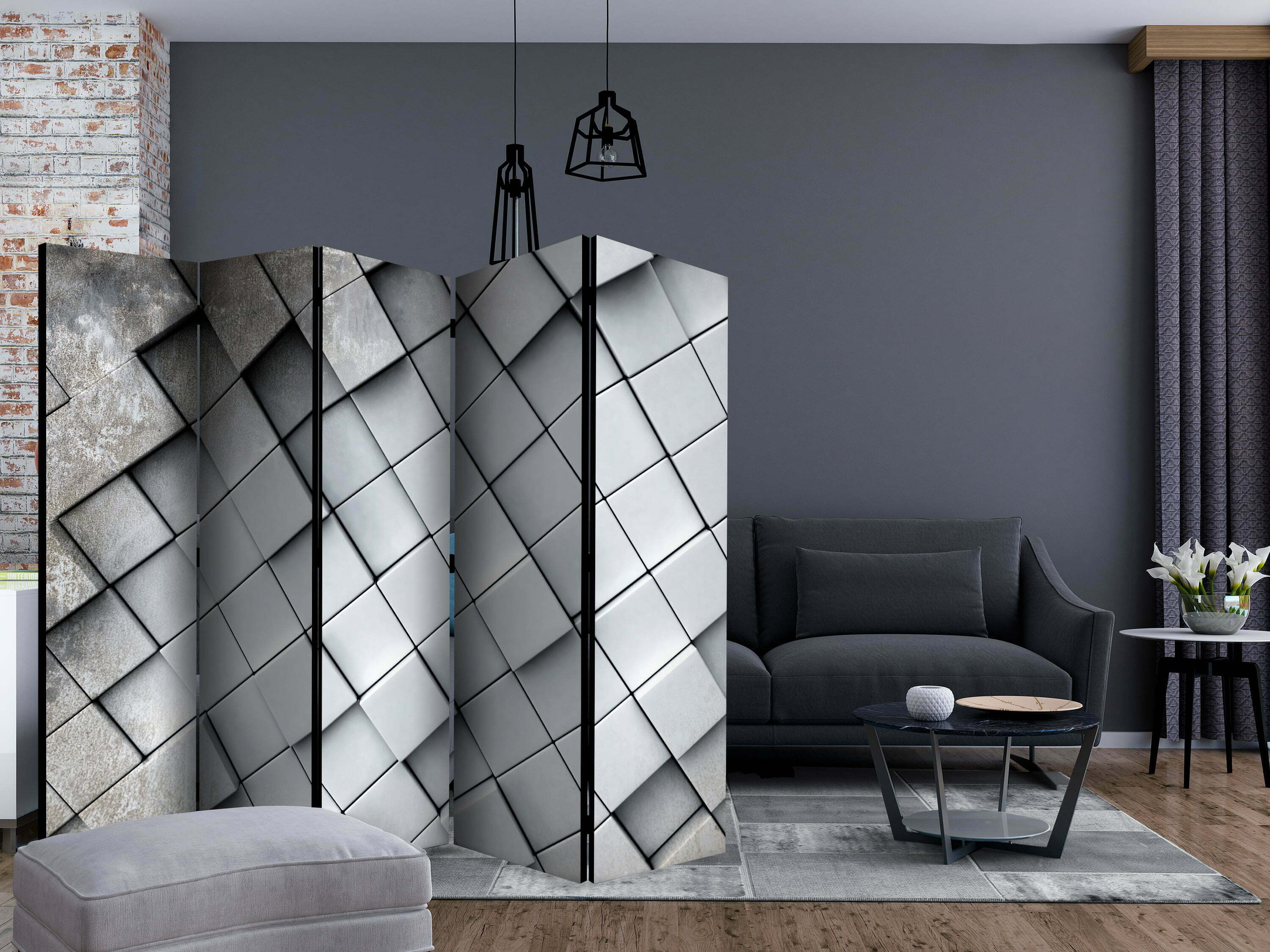 Dekoratives Paravent “Gray background 3D II [Room Dividers]” ist ein besonderes Schmuckstück für die modernen Inneräume. 5-teilig, hergestellt aus Holz und beidseitig bedrucktes Paravent teilt nicht nur diskret den Raum sonder kreiert auch in dem Raum ein fabelhaftes Arrangement.