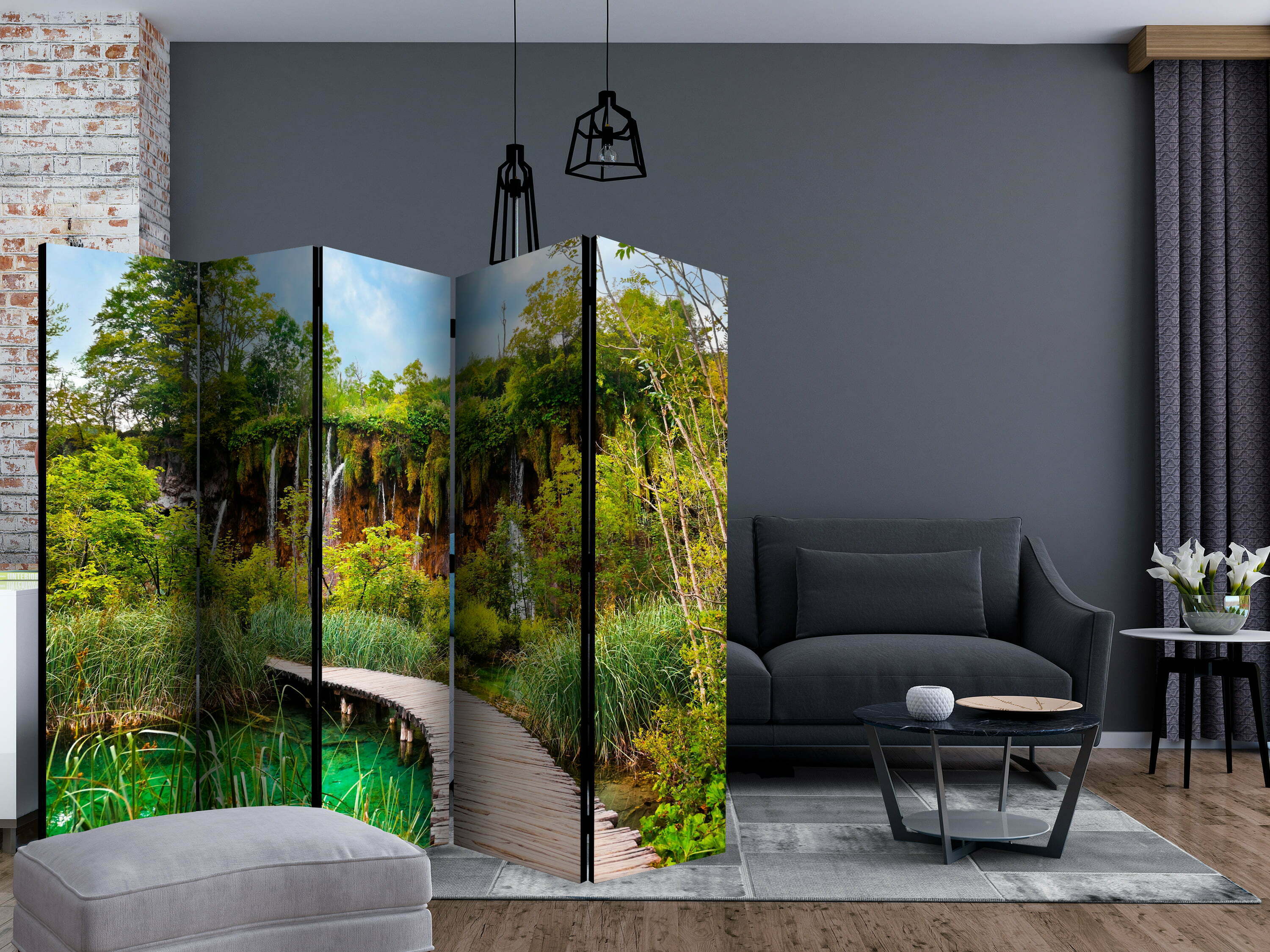 Dekoratives Paravent “Green oasis II [Room Dividers]” ist ein besonderes Schmuckstück für die modernen Inneräume. 5-teilig, hergestellt aus Holz und beidseitig bedrucktes Paravent teilt nicht nur diskret den Raum sonder kreiert auch in dem Raum ein fabelhaftes Arrangement. Perfekte Herstellung sowie originelle Motive in der Full HD Druckqualität verursachen, dass die Zimmerparavents jedem Raum einen einmaligen Charme verleihen. Die dekorativen Paravents für die Wohnung, dass ist mit Sicherheit eine originelle Idee für die Dekoration des Innenraumes. Es lohnt sich ihre praktische Anwendung zu erwähnen – die Zimmerparavents kann man z.B. zwecks der Kachierung des Wäschetrockners nutzen. Das Paravent ist eine sehr originelle Dekoration von Räumen, die man nutzen kann, sowohl in der Wohnung wie auch in einem Atelier z.B. im Friseursalon, Arztpraxis oder im Buchhaltungsbüro.