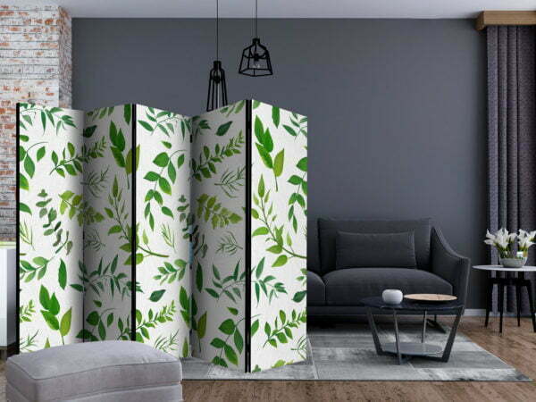 Dekoratives Paravent “Green Twigs II [Room Dividers]” ist ein besonderes Schmuckstück für die modernen Inneräume. 5-teilig, hergestellt aus Holz und beidseitig bedrucktes Paravent teilt nicht nur diskret den Raum sonder kreiert auch in dem Raum ein fabelhaftes Arrangement. Perfekte Herstellung sowie originelle Motive in der Full HD Druckqualität verursachen, dass die Zimmerparavents jedem Raum einen einmaligen Charme verleihen. Die dekorativen Paravents für die Wohnung, dass ist mit Sicherheit eine originelle Idee für die Dekoration des Innenraumes. Es lohnt sich ihre praktische Anwendung zu erwähnen – die Zimmerparavents kann man z.B. zwecks der Kachierung des Wäschetrockners nutzen. Das Paravent ist eine sehr originelle Dekoration von Räumen, die man nutzen kann, sowohl in der Wohnung wie auch in einem Atelier z.B. im Friseursalon, Arztpraxis oder im Buchhaltungsbüro.