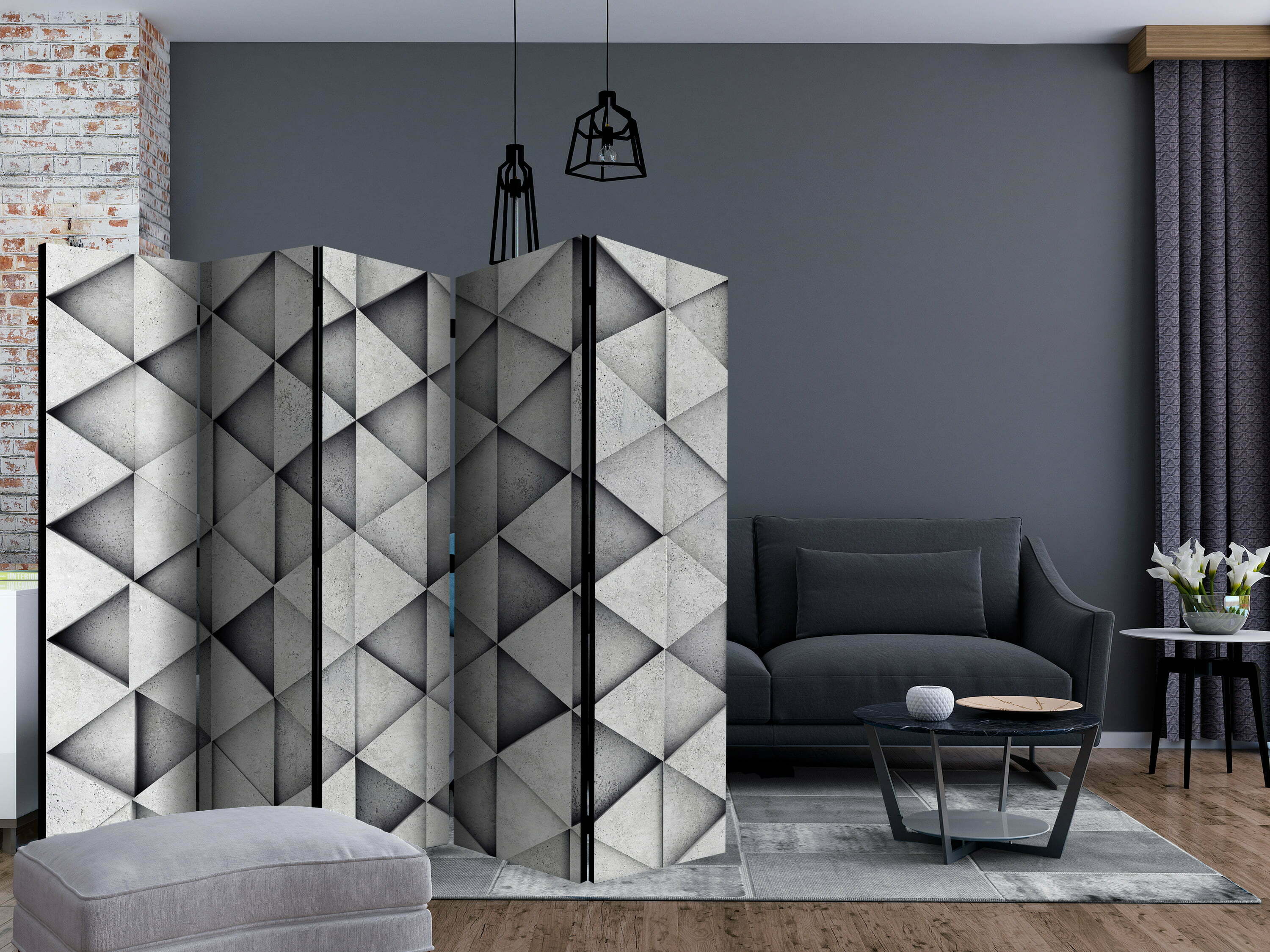 Be the first to review “5-teiliges Paravent – Grey Triangles II [Room Dividers]”