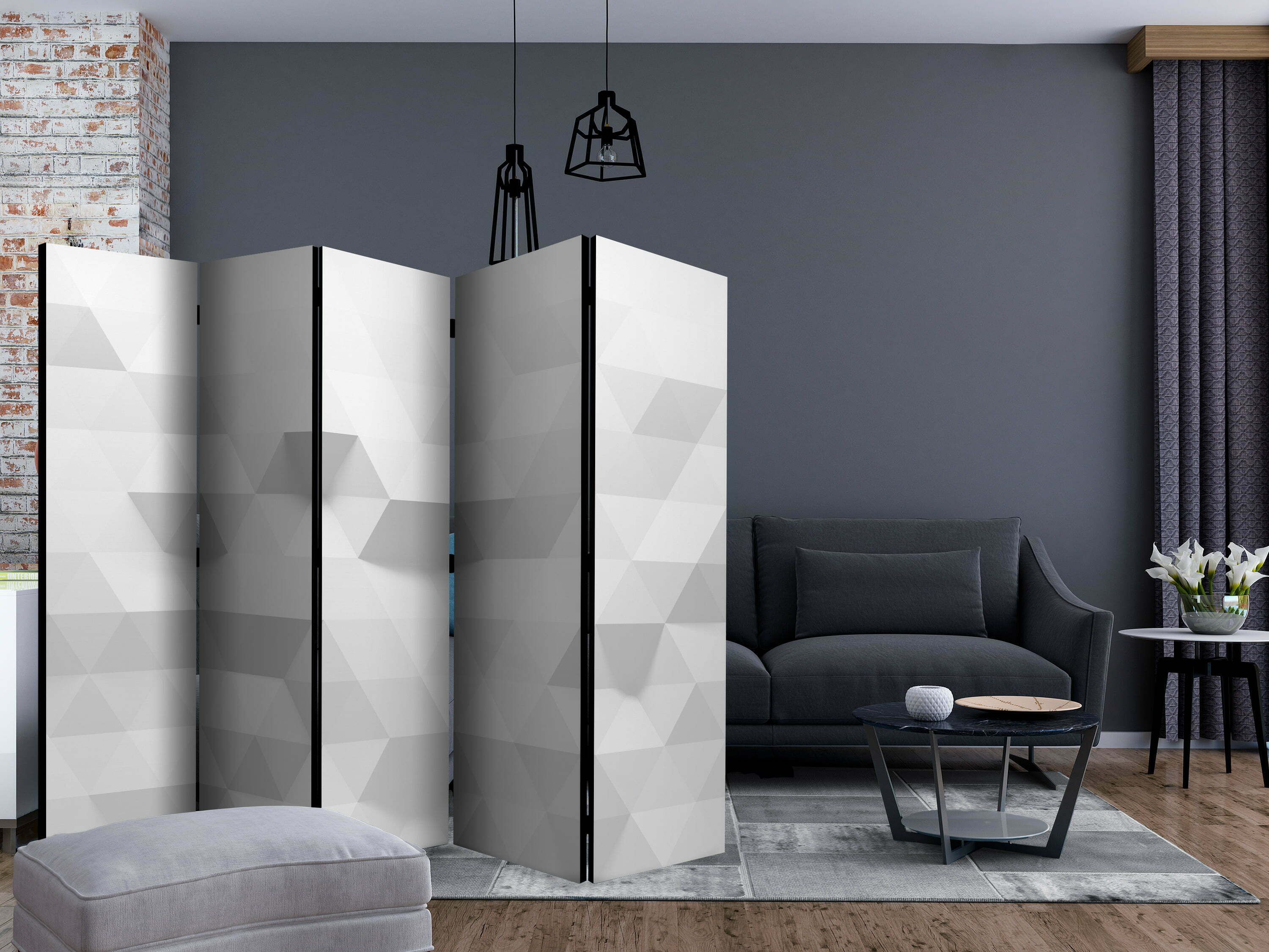 Dekoratives Paravent “Harmony of Triangles II [Room Dividers]” ist ein besonderes Schmuckstück für die modernen Inneräume. 5-teilig, hergestellt aus Holz und beidseitig bedrucktes Paravent teilt nicht nur diskret den Raum sonder kreiert auch in dem Raum ein fabelhaftes Arrangement. Perfekte Herstellung sowie originelle Motive in der Full HD Druckqualität verursachen, dass die Zimmerparavents jedem Raum einen einmaligen Charme verleihen. Die dekorativen Paravents für die Wohnung, dass ist mit Sicherheit eine originelle Idee für die Dekoration des Innenraumes. Es lohnt sich ihre praktische Anwendung zu erwähnen – die Zimmerparavents kann man z.B. zwecks der Kachierung des Wäschetrockners nutzen. Das Paravent ist eine sehr originelle Dekoration von Räumen, die man nutzen kann, sowohl in der Wohnung wie auch in einem Atelier z.B. im Friseursalon, Arztpraxis oder im Buchhaltungsbüro.
