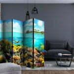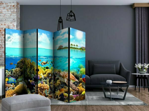 Dekoratives Paravent “Heavenly Maldive II [Room Dividers]” ist ein besonderes Schmuckstück für die modernen Inneräume. 5-teilig, hergestellt aus Holz und beidseitig bedrucktes Paravent teilt nicht nur diskret den Raum sonder kreiert auch in dem Raum ein fabelhaftes Arrangement.