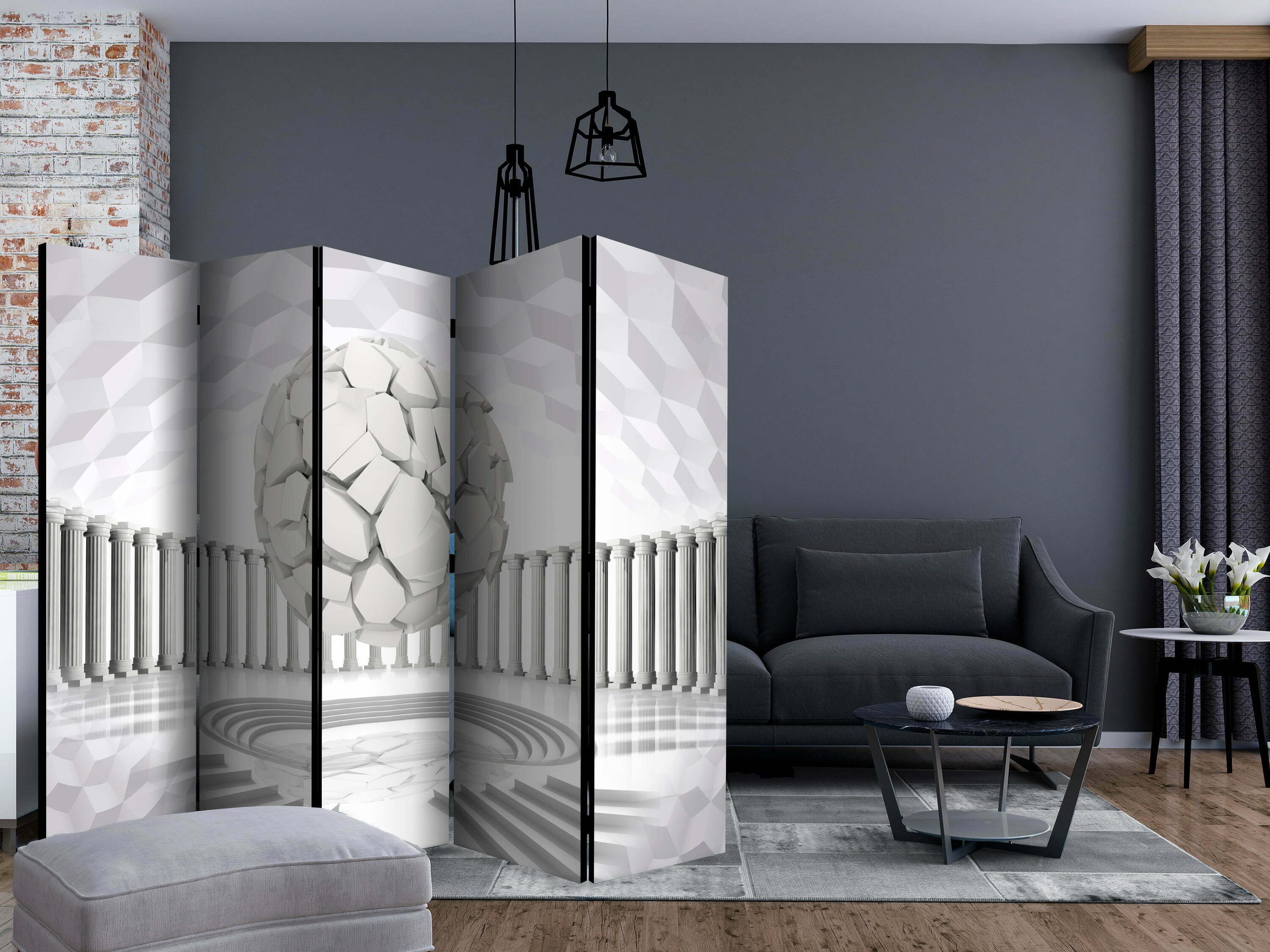 Dekoratives Paravent “Hidden Geometry II [Room Dividers]” ist ein besonderes Schmuckstück für die modernen Inneräume. 5-teilig, hergestellt aus Holz und beidseitig bedrucktes Paravent teilt nicht nur diskret den Raum sonder kreiert auch in dem Raum ein fabelhaftes Arrangement. Perfekte Herstellung sowie originelle Motive in der Full HD Druckqualität verursachen, dass die Zimmerparavents jedem Raum einen einmaligen Charme verleihen. Die dekorativen Paravents für die Wohnung, dass ist mit Sicherheit eine originelle Idee für die Dekoration des Innenraumes. Es lohnt sich ihre praktische Anwendung zu erwähnen – die Zimmerparavents kann man z.B. zwecks der Kachierung des Wäschetrockners nutzen. Das Paravent ist eine sehr originelle Dekoration von Räumen, die man nutzen kann, sowohl in der Wohnung wie auch in einem Atelier z.B. im Friseursalon, Arztpraxis oder im Buchhaltungsbüro.