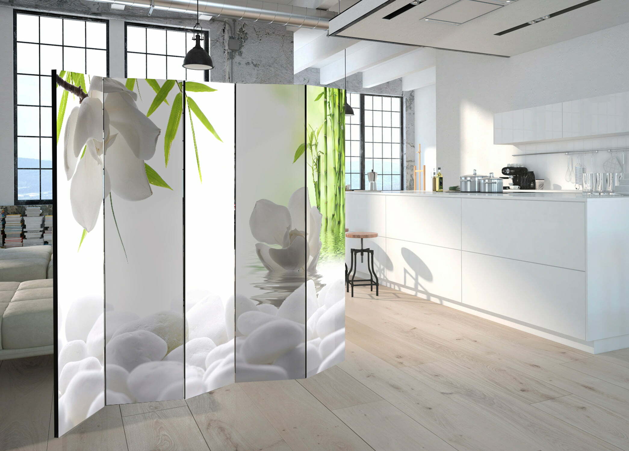 Dekoratives Paravent “Lake of Silence II [Room Dividers]” ist ein besonderes Schmuckstück für die modernen Inneräume. 5-teilig, hergestellt aus Holz und beidseitig bedrucktes Paravent teilt nicht nur diskret den Raum sonder kreiert auch in dem Raum ein fabelhaftes Arrangement.