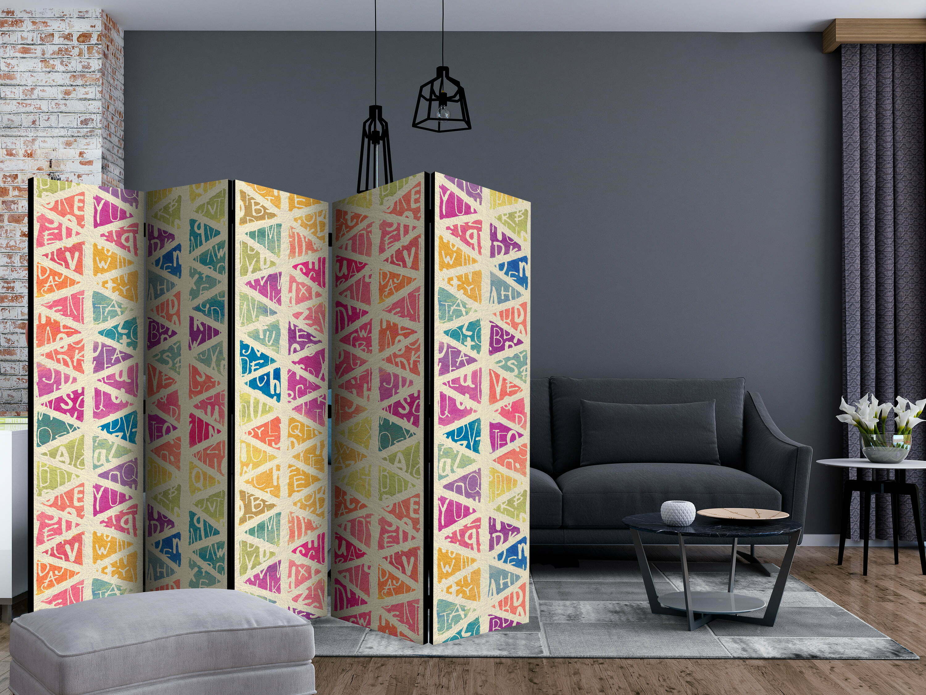 5-teiliges Paravent – Letters nad Triangles II [Room Dividers]