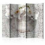 5-teiliges Paravent – Lilies and Quilted Background II [Room Dividers]
