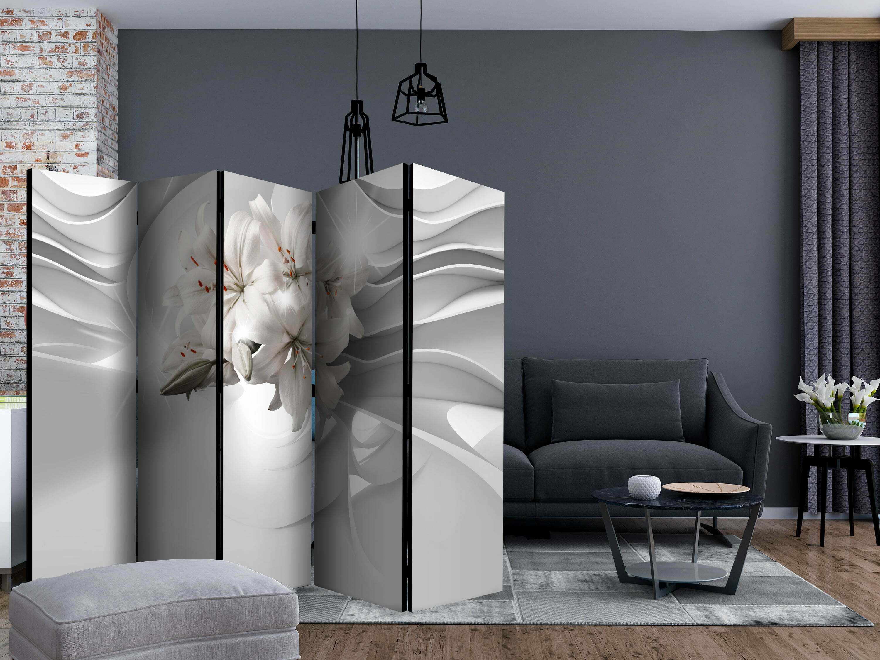 Dekoratives Paravent “Lilies in the Tunnel II [Room Dividers]” ist ein besonderes Schmuckstück für die modernen Inneräume. 5-teilig, hergestellt aus Holz und beidseitig bedrucktes Paravent teilt nicht nur diskret den Raum sonder kreiert auch in dem Raum ein fabelhaftes Arrangement. Perfekte Herstellung sowie originelle Motive in der Full HD Druckqualität verursachen, dass die Zimmerparavents jedem Raum einen einmaligen Charme verleihen. Die dekorativen Paravents für die Wohnung, dass ist mit Sicherheit eine originelle Idee für die Dekoration des Innenraumes. Es lohnt sich ihre praktische Anwendung zu erwähnen – die Zimmerparavents kann man z.B. zwecks der Kachierung des Wäschetrockners nutzen. Das Paravent ist eine sehr originelle Dekoration von Räumen, die man nutzen kann, sowohl in der Wohnung wie auch in einem Atelier z.B. im Friseursalon, Arztpraxis oder im Buchhaltungsbüro.