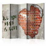 Dekoratives Paravent “Love is all you need II [Room Dividers]” ist ein besonderes Schmuckstück für die modernen Inneräume. 5-teilig, hergestellt aus Holz und beidseitig bedrucktes Paravent teilt nicht nur diskret den Raum sonder kreiert auch in dem Raum ein fabelhaftes Arrangement. Perfekte Herstellung sowie originelle Motive in der Full HD Druckqualität verursachen, dass die Zimmerparavents jedem Raum einen einmaligen Charme verleihen. Die dekorativen Paravents für die Wohnung, dass ist mit Sicherheit eine originelle Idee für die Dekoration des Innenraumes. Es lohnt sich ihre praktische Anwendung zu erwähnen – die Zimmerparavents kann man z.B. zwecks der Kachierung des Wäschetrockners nutzen. Das Paravent ist eine sehr originelle Dekoration von Räumen, die man nutzen kann, sowohl in der Wohnung wie auch in einem Atelier z.B. im Friseursalon, Arztpraxis oder im Buchhaltungsbüro.
