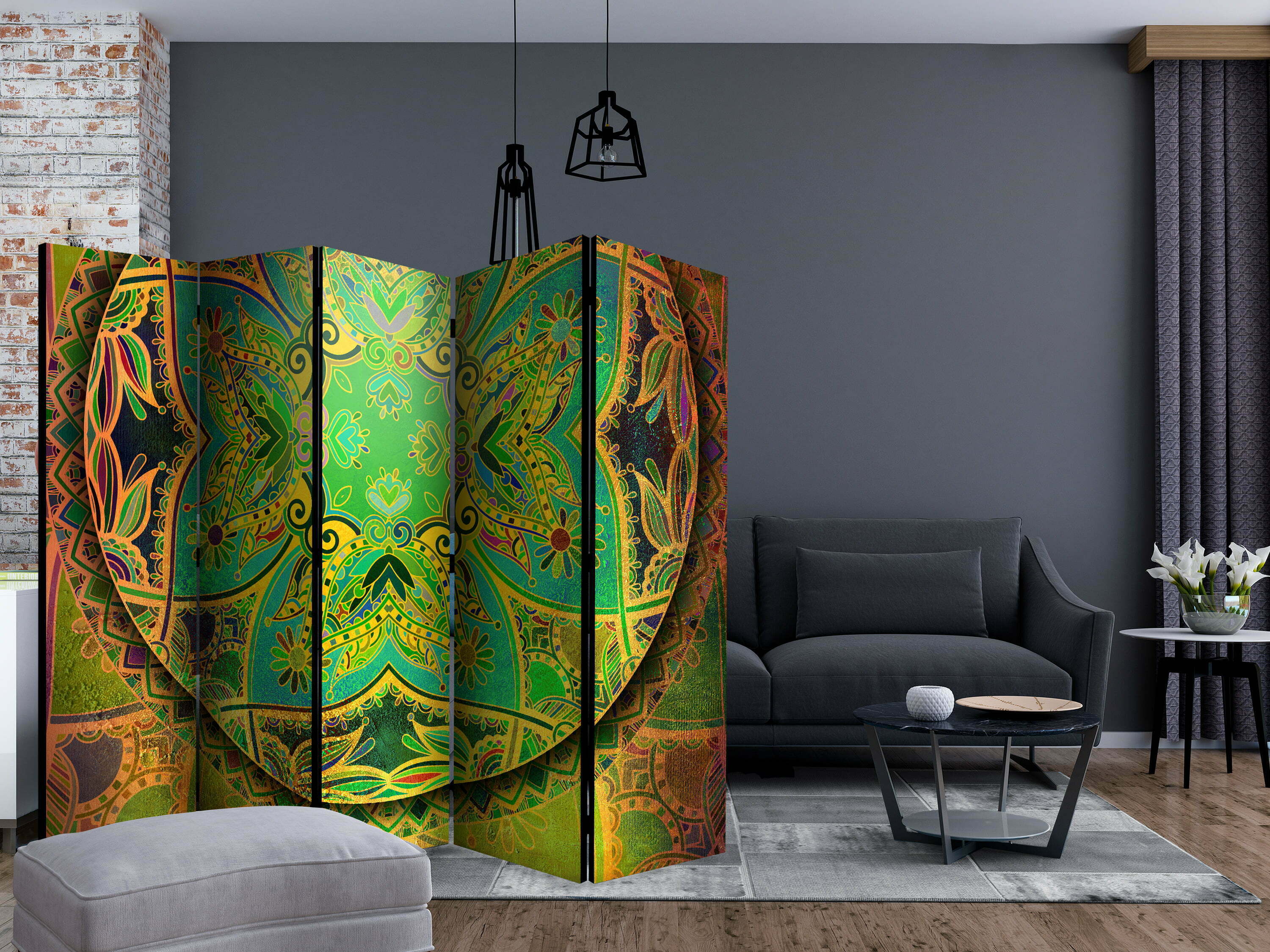 5-teiliges Paravent – Mandala: Emerald Fantasy II [Room Dividers]