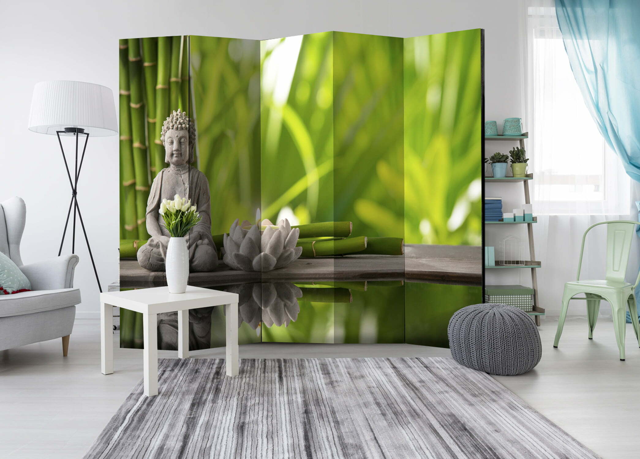 Dekoratives Paravent “Meditation II [Room Dividers]” ist ein besonderes Schmuckstück für die modernen Inneräume. 5-teilig, hergestellt aus Holz und beidseitig bedrucktes Paravent teilt nicht nur diskret den Raum sonder kreiert auch in dem Raum ein fabelhaftes Arrangement. Perfekte Herstellung sowie originelle Motive in der Full HD Druckqualität verursachen, dass die Zimmerparavents jedem Raum einen einmaligen Charme verleihen. Die dekorativen Paravents für die Wohnung, dass ist mit Sicherheit eine originelle Idee für die Dekoration des Innenraumes. Es lohnt sich ihre praktische Anwendung zu erwähnen – die Zimmerparavents kann man z.B. zwecks der Kachierung des Wäschetrockners nutzen. Das Paravent ist eine sehr originelle Dekoration von Räumen, die man nutzen kann, sowohl in der Wohnung wie auch in einem Atelier z.B. im Friseursalon, Arztpraxis oder im Buchhaltungsbüro.
