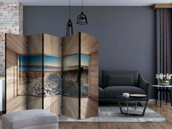 Dekoratives Paravent “Modern Lounge: By the Sea II [Room Dividers]” ist ein besonderes Schmuckstück für die modernen Inneräume. 5-teilig, hergestellt aus Holz und beidseitig bedrucktes Paravent teilt nicht nur diskret den Raum sonder kreiert auch in dem Raum ein fabelhaftes Arrangement.
