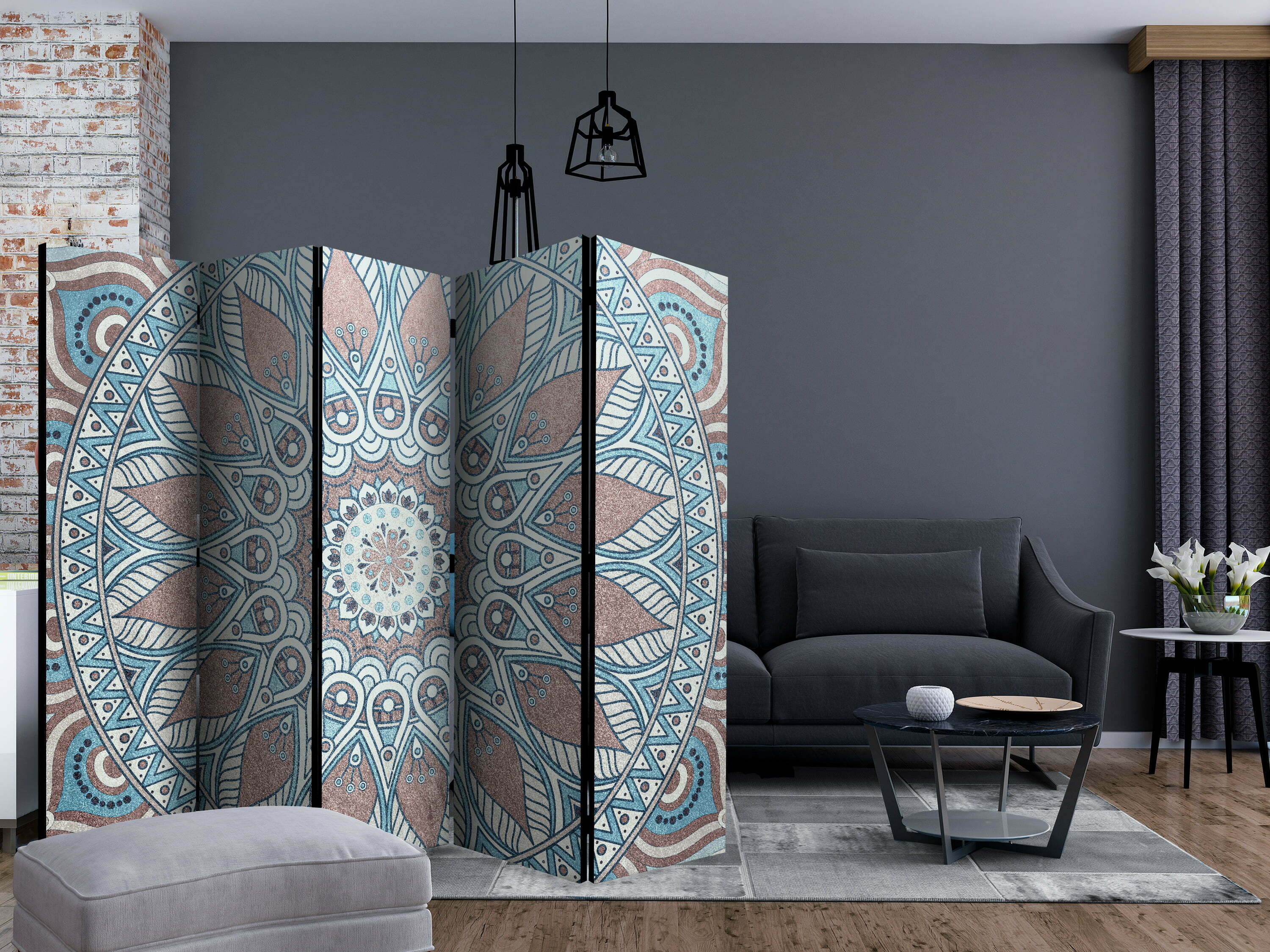 5-teiliges Paravent – Oriental Circle II [Room Dividers]