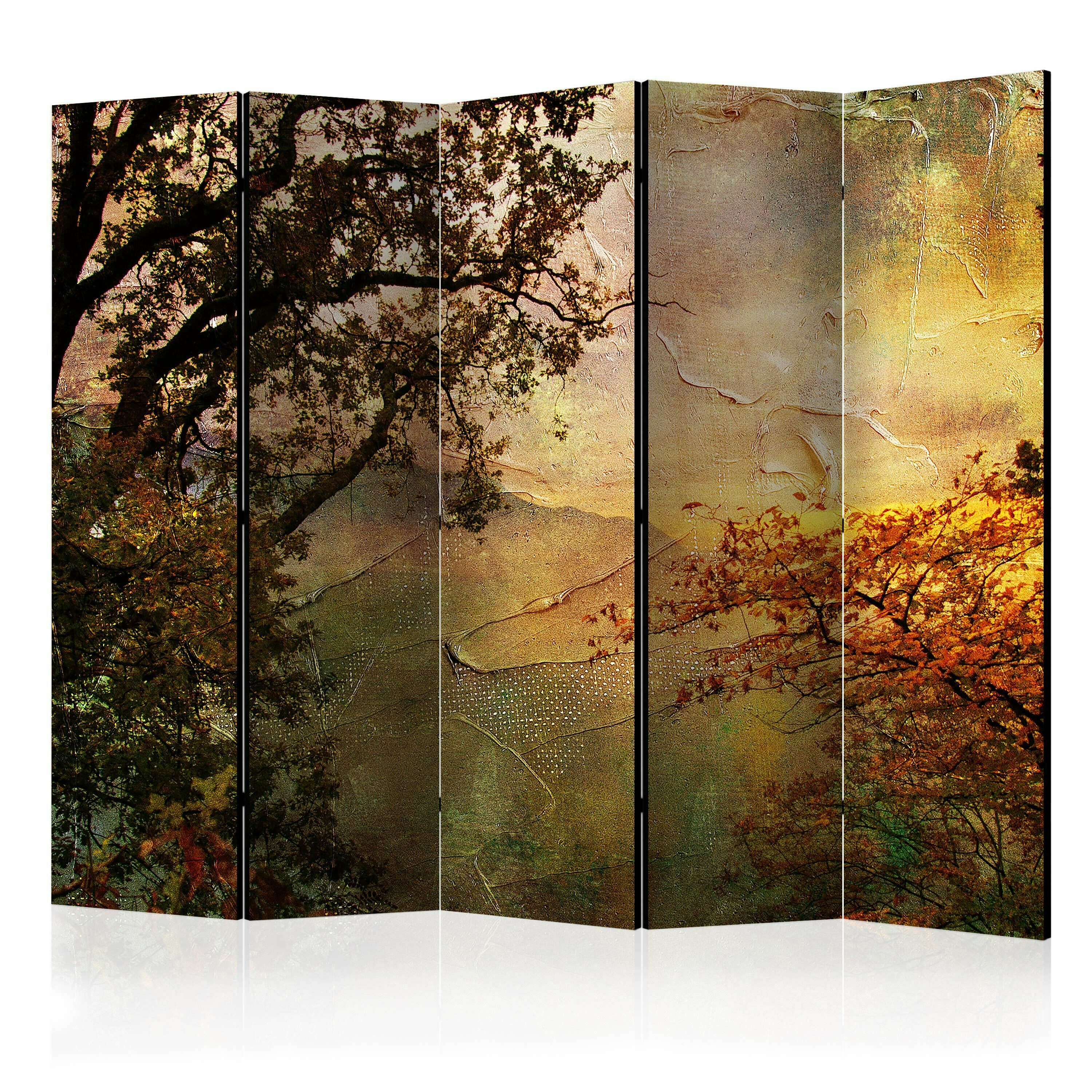 Dekoratives Paravent “Painted autumn II [Room Dividers]” ist ein besonderes Schmuckstück für die modernen Inneräume. 5-teilig, hergestellt aus Holz und beidseitig bedrucktes Paravent teilt nicht nur diskret den Raum sonder kreiert auch in dem Raum ein fabelhaftes Arrangement.
