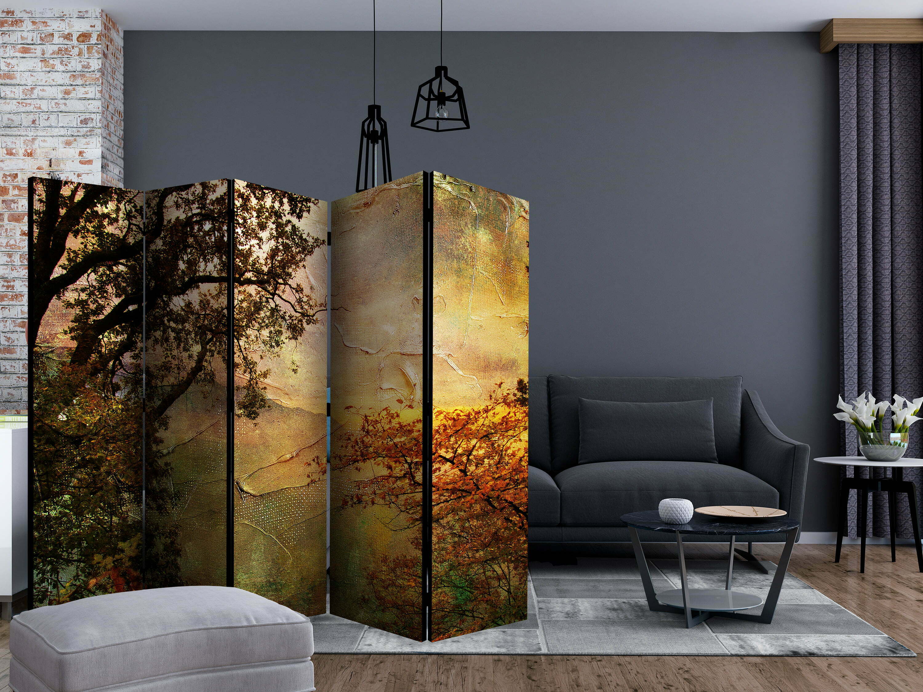 Dekoratives Paravent “Painted autumn II [Room Dividers]” ist ein besonderes Schmuckstück für die modernen Inneräume. 5-teilig, hergestellt aus Holz und beidseitig bedrucktes Paravent teilt nicht nur diskret den Raum sonder kreiert auch in dem Raum ein fabelhaftes Arrangement. Perfekte Herstellung sowie originelle Motive in der Full HD Druckqualität verursachen, dass die Zimmerparavents jedem Raum einen einmaligen Charme verleihen. Die dekorativen Paravents für die Wohnung, dass ist mit Sicherheit eine originelle Idee für die Dekoration des Innenraumes. Es lohnt sich ihre praktische Anwendung zu erwähnen – die Zimmerparavents kann man z.B. zwecks der Kachierung des Wäschetrockners nutzen. Das Paravent ist eine sehr originelle Dekoration von Räumen, die man nutzen kann, sowohl in der Wohnung wie auch in einem Atelier z.B. im Friseursalon, Arztpraxis oder im Buchhaltungsbüro.