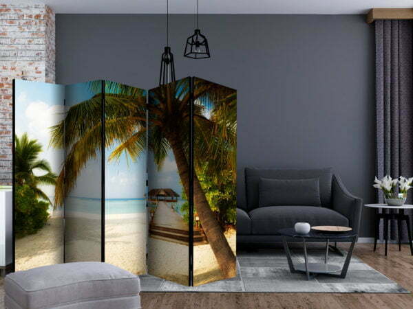 Dekoratives Paravent “Paradise beach II [Room Dividers]” ist ein besonderes Schmuckstück für die modernen Inneräume. 5-teilig, hergestellt aus Holz und beidseitig bedrucktes Paravent teilt nicht nur diskret den Raum sonder kreiert auch in dem Raum ein fabelhaftes Arrangement. Perfekte Herstellung sowie originelle Motive in der Full HD Druckqualität verursachen, dass die Zimmerparavents jedem Raum einen einmaligen Charme verleihen. Die dekorativen Paravents für die Wohnung, dass ist mit Sicherheit eine originelle Idee für die Dekoration des Innenraumes. Es lohnt sich ihre praktische Anwendung zu erwähnen – die Zimmerparavents kann man z.B. zwecks der Kachierung des Wäschetrockners nutzen. Das Paravent ist eine sehr originelle Dekoration von Räumen, die man nutzen kann, sowohl in der Wohnung wie auch in einem Atelier z.B. im Friseursalon, Arztpraxis oder im Buchhaltungsbüro.