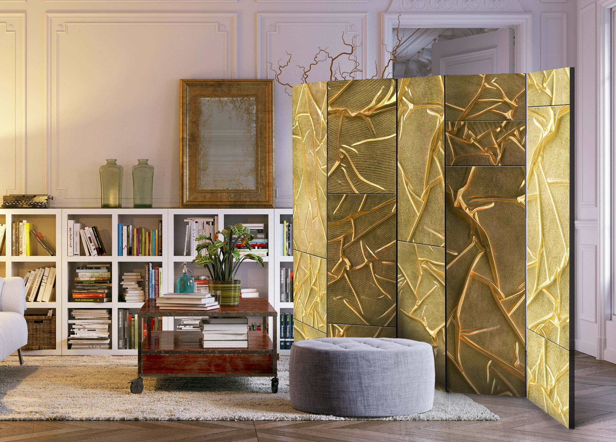 - Als Zimmerparavent und ein dekoratives Möbelstück, dass den großen Salon vom Speisezimmer und Küche trennt