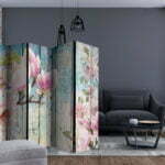 Be the first to review “5-teiliges Paravent – Pink Flowers on Wood II [Room Dividers]”