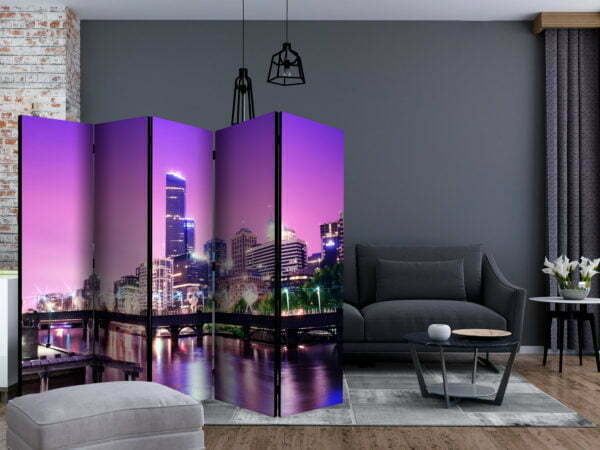 Dekoratives Paravent “Purple Melbourne II [Room Dividers]” ist ein besonderes Schmuckstück für die modernen Inneräume. 5-teilig, hergestellt aus Holz und beidseitig bedrucktes Paravent teilt nicht nur diskret den Raum sonder kreiert auch in dem Raum ein fabelhaftes Arrangement.