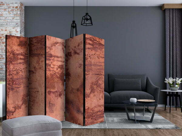Dekoratives Paravent “Red Metal Sheet II [Room Dividers]” ist ein besonderes Schmuckstück für die modernen Inneräume. 5-teilig, hergestellt aus Holz und beidseitig bedrucktes Paravent teilt nicht nur diskret den Raum sonder kreiert auch in dem Raum ein fabelhaftes Arrangement.