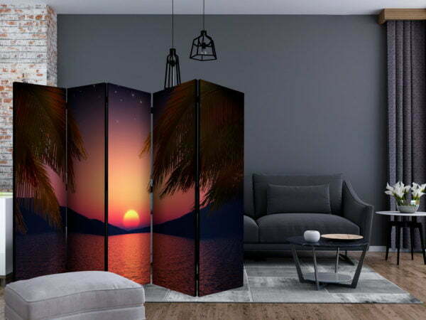 Dekoratives Paravent “Romantic evening on the beach II [Room Dividers]” ist ein besonderes Schmuckstück für die modernen Inneräume. 5-teilig, hergestellt aus Holz und beidseitig bedrucktes Paravent teilt nicht nur diskret den Raum sonder kreiert auch in dem Raum ein fabelhaftes Arrangement.