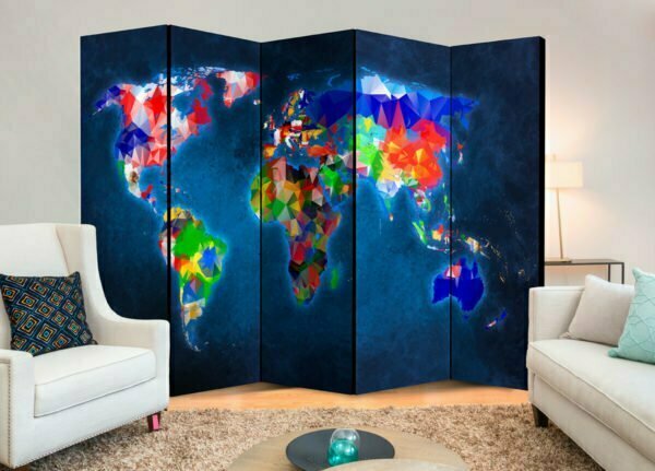 Be the first to review “5-teiliges Paravent – Room divider – Colorful map”