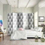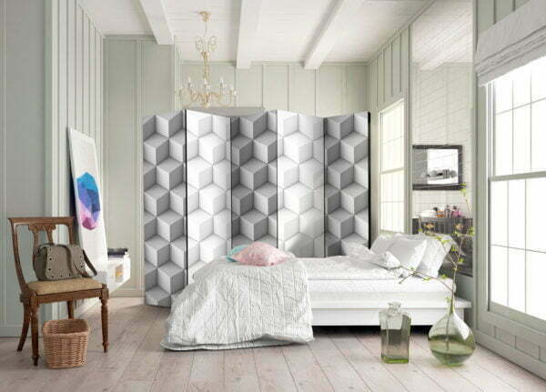 Dekoratives Paravent “Room divider – Cube II” ist ein besonderes Schmuckstück für die modernen Inneräume. 5-teilig, hergestellt aus Holz und beidseitig bedrucktes Paravent teilt nicht nur diskret den Raum sonder kreiert auch in dem Raum ein fabelhaftes Arrangement.
