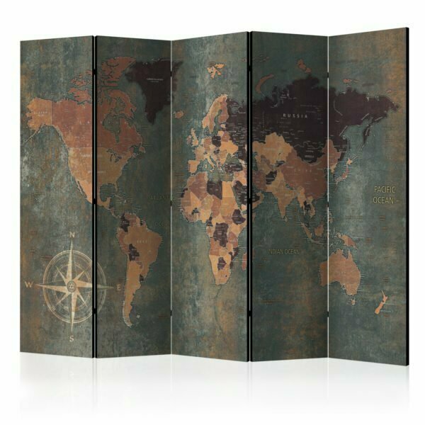Be the first to review “5-teiliges Paravent – Room divider – Map in browns and greys”