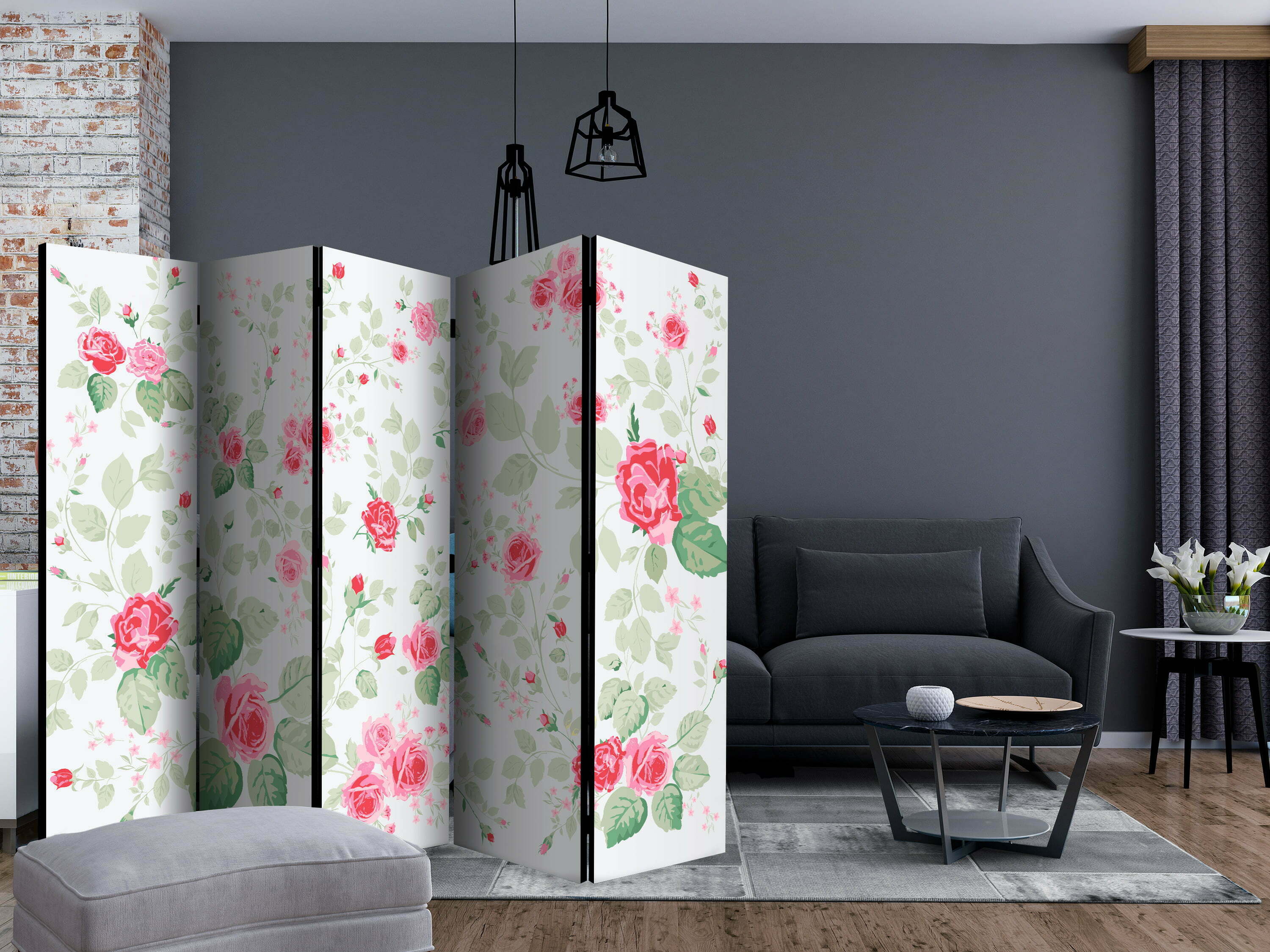 Dekoratives Paravent “Rosy pleasures II [Room Dividers]” ist ein besonderes Schmuckstück für die modernen Inneräume. 5-teilig, hergestellt aus Holz und beidseitig bedrucktes Paravent teilt nicht nur diskret den Raum sonder kreiert auch in dem Raum ein fabelhaftes Arrangement.