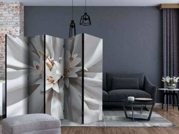 Dekoratives Paravent “Sensual Lilies II [Room Dividers]” ist ein besonderes Schmuckstück für die modernen Inneräume. 5-teilig, hergestellt aus Holz und beidseitig bedrucktes Paravent teilt nicht nur diskret den Raum sonder kreiert auch in dem Raum ein fabelhaftes Arrangement. Perfekte Herstellung sowie originelle Motive in der Full HD Druckqualität verursachen, dass die Zimmerparavents jedem Raum einen einmaligen Charme verleihen. Die dekorativen Paravents für die Wohnung, dass ist mit Sicherheit eine originelle Idee für die Dekoration des Innenraumes. Es lohnt sich ihre praktische Anwendung zu erwähnen – die Zimmerparavents kann man z.B. zwecks der Kachierung des Wäschetrockners nutzen. Das Paravent ist eine sehr originelle Dekoration von Räumen, die man nutzen kann, sowohl in der Wohnung wie auch in einem Atelier z.B. im Friseursalon, Arztpraxis oder im Buchhaltungsbüro.