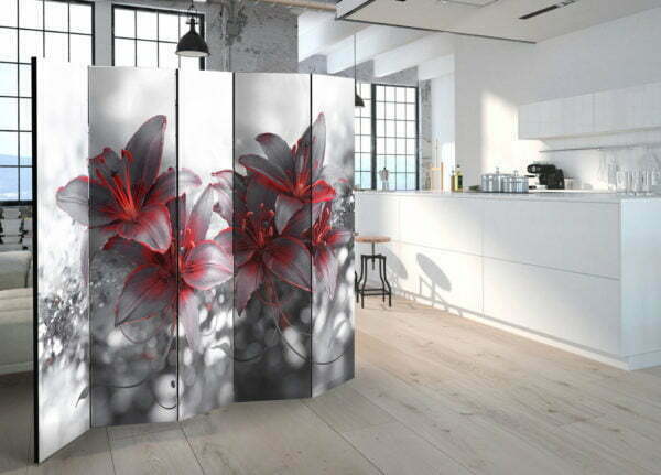 Dekoratives Paravent “Shadow of Passion II [Room Dividers]” ist ein besonderes Schmuckstück für die modernen Inneräume. 5-teilig, hergestellt aus Holz und beidseitig bedrucktes Paravent teilt nicht nur diskret den Raum sonder kreiert auch in dem Raum ein fabelhaftes Arrangement.